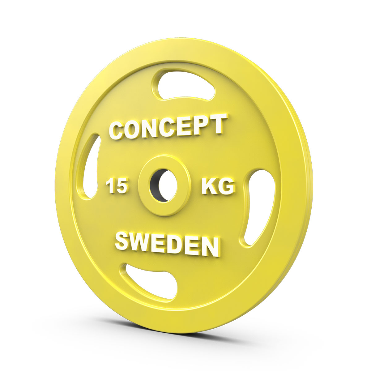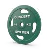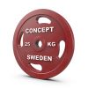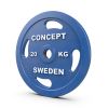 Kestävä kumipäällyste ja valettu rautaydin. Selkeät painomerkinnät valkoisella. 50 mm:n reikä. Conceptin oma malli ja valmistus.